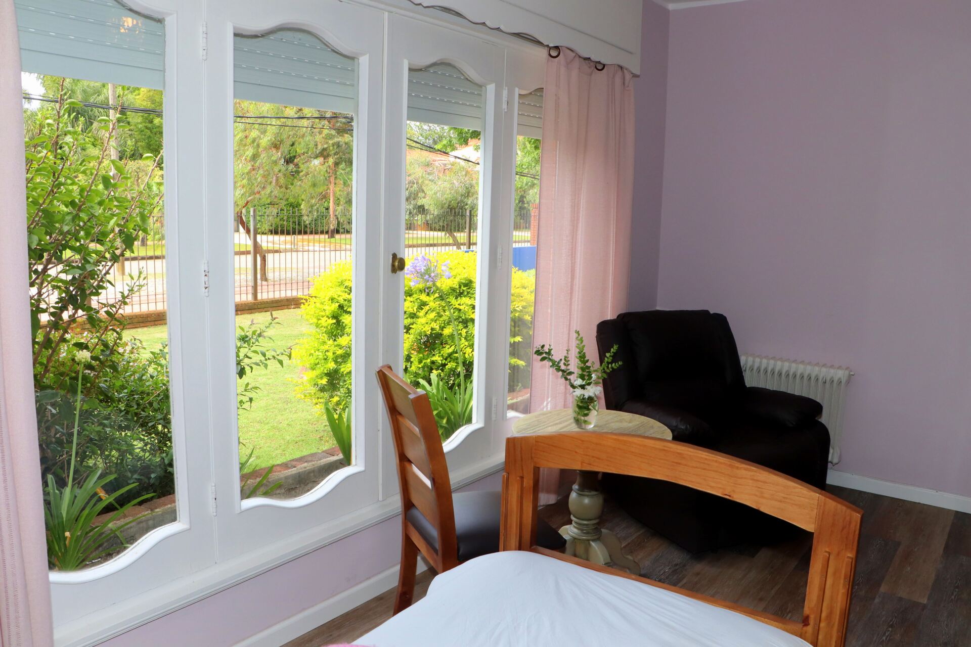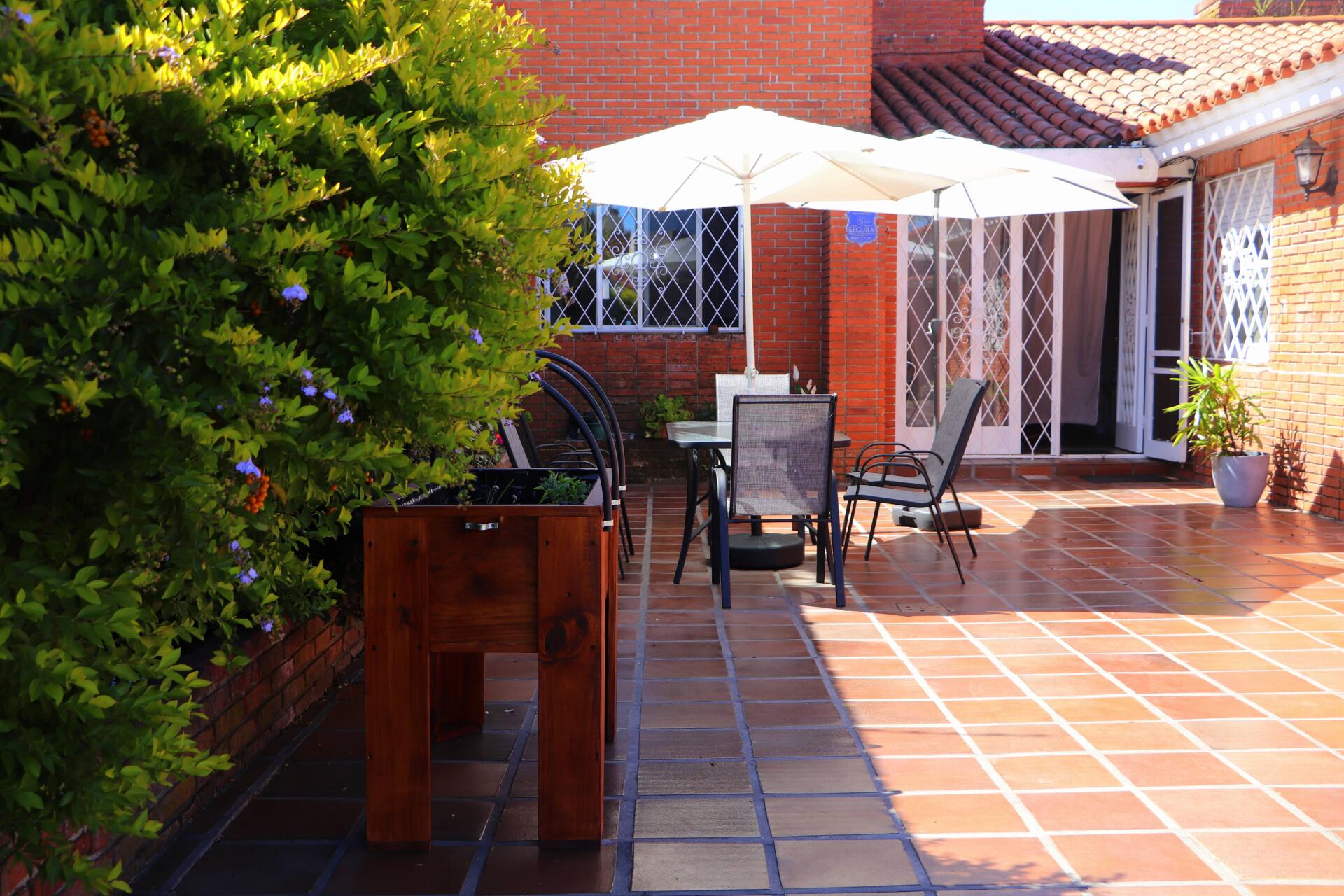 El jardín que rodea la propiedad es un espacio disfrutable para la recreación y la socialización.