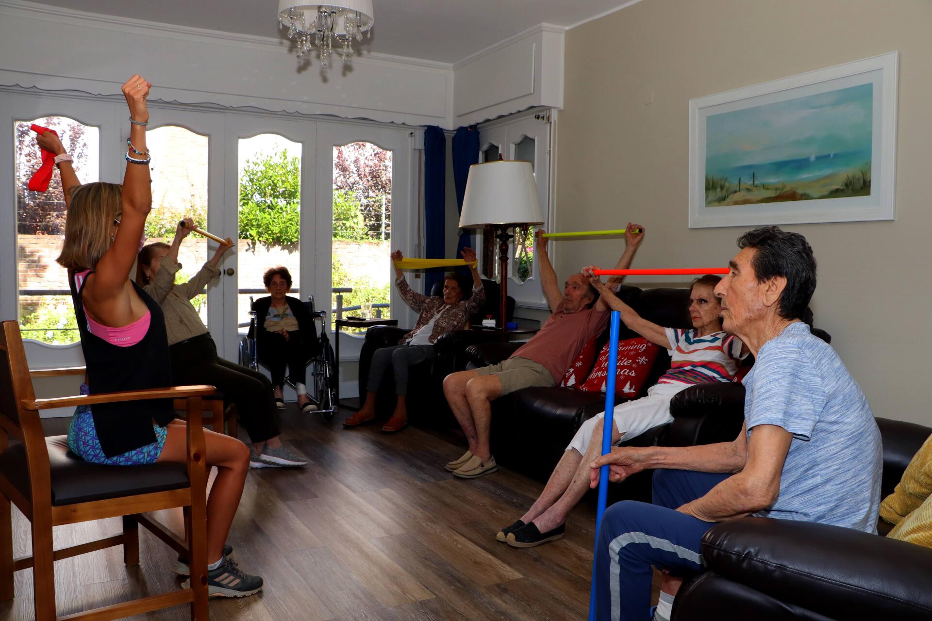 Ejercicios de elongación, como yoga, stretching. La eleasticidad y flexibilidad disminuyen con la edad y esta disminución se acentúan aún más con las deformidades óseas, con la debilidad muscular, con el acortamiento de los tendones y con disminución de la elasticidad tisular. Para ello, es ideal realizar ejercicios que aumenten la amplitud de los grupos musculares mayores y delas articulaciones a través e estiramientos activos o pasivos, aumentando así la flexibilidad de los ligamentos y de los músculos.